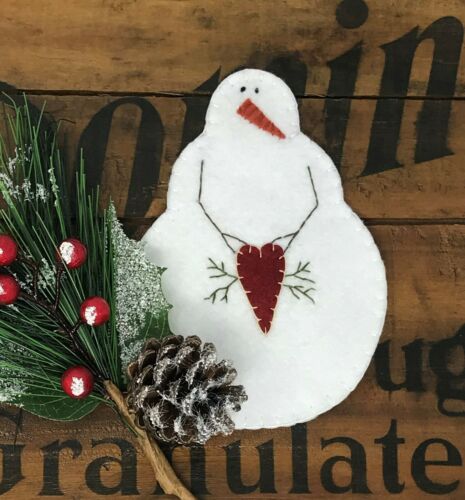 Title (ebay affiliate link): Primitive Stitchery CHRISTMAS Twiggy Snowman Penny Rug ~ WINTER Heart Candle Mat