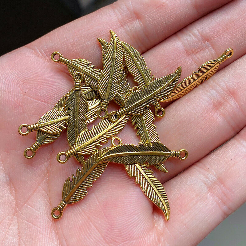 Title (ebay affiliate link): 20pcs 26x7mm screw feather Charms Antiqued gold Tone Jewelry Making