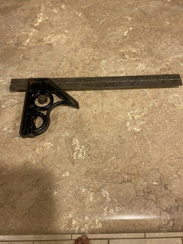 Vintage Starrett 2 Piece Machinist Combination Square 12" Slotted Rule 94