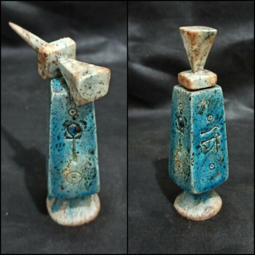 Ultra Rare Faience Ancient Egyptian Cosmetic Jar Antique Horus Ankh Sculpture