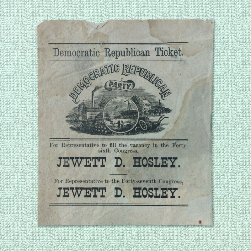 Title (ebay affiliate link): 1880 CAMPAIGN TICKET FOR US HOUSE OF REPRESENTATIVES, FROM NH, JEWETT D. HOSLEY