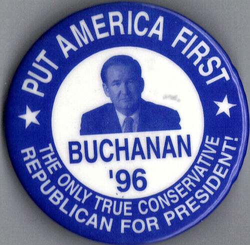 Title (ebay affiliate link): 1996 Pat Buchanan 2-1/4" / "Put America First" (R)Presidential Campaign Button