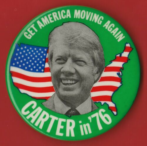 Title (ebay affiliate link): 1976 Jimmy Carter 3.5" / "Get America Moving" Presidential Campaign Button