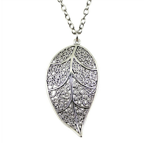 Title (ebay affiliate link): Antique Silver Color Big Leaf Pendant Necklace , 50Cm Chain Long Necklace
