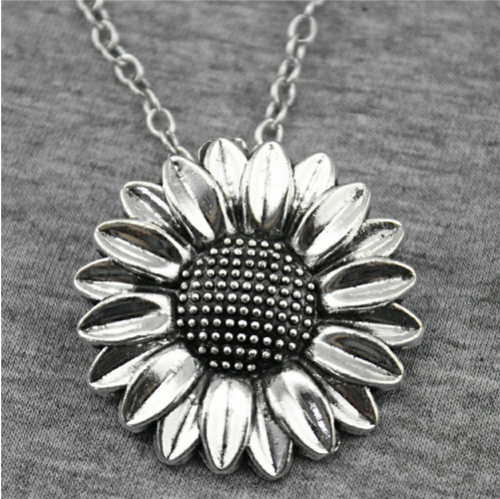 Title (ebay affiliate link): Antique Silver,37mm Sunflower Pendant Necklace, 50Cm Chain Long Necklace Jewelry