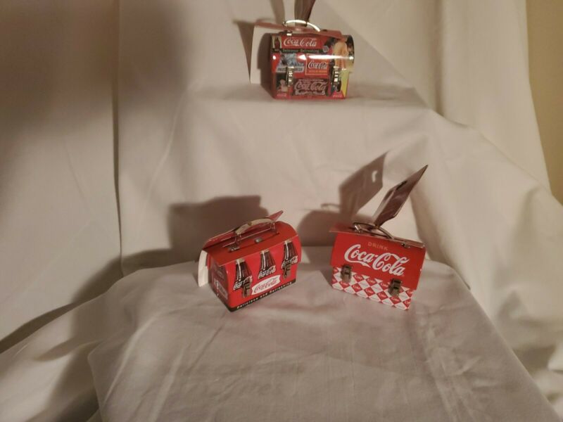 Coca Cola Hanging ornament Lunch Box Tins Lot Of 3