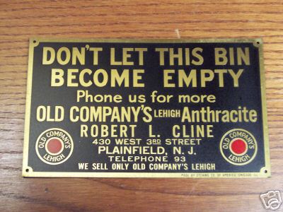 ANTIQUE BRASS COAL SIGN.AROUND 75 YEARS OLD