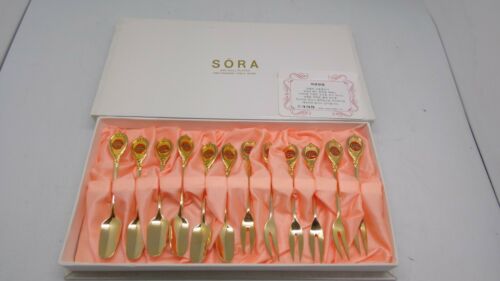 Title (ebay affiliate link): SORA 24K GOLD PLATED HIGH FASHION TABLEWARE TEN PIECES FIVE SPOONS 5 FORKS DC