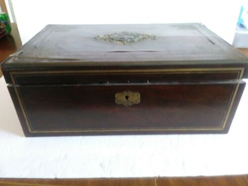 ANTIQUE LAP DESK, WOODEN WITH METAL EMBELLISHMENT--LATE 1800''S