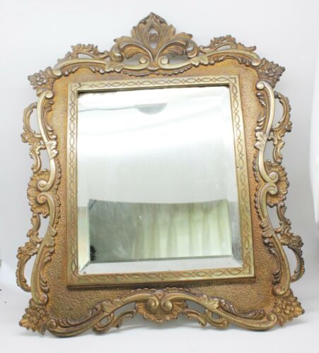 19th Century Brass Patinated Cast Iron Bevelled Mirror #954