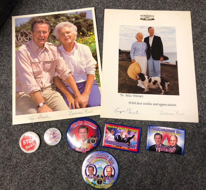 Title (ebay affiliate link): President George W. Bush & Sr. souvenir photos buttons GOP Republican Politics