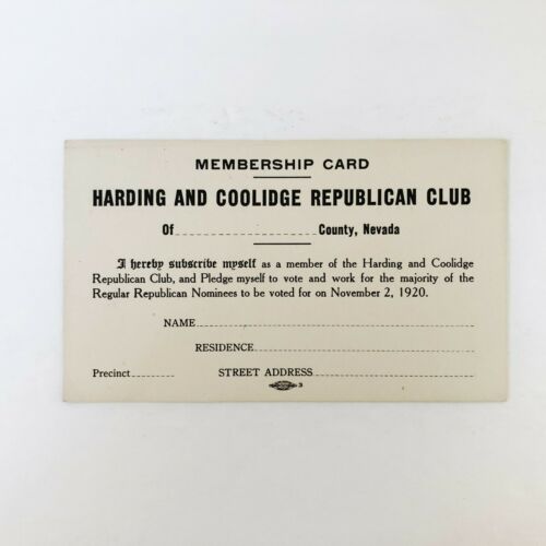Title (ebay affiliate link): 1920 HARDING and COOLIDGE REPUBLICAN CLUB Membership Card - Nevada