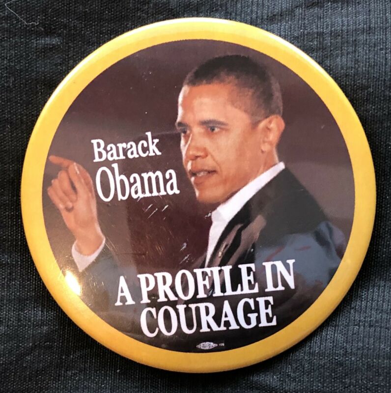 Title (ebay affiliate link): BARACK OBAMA PROFILE IN COURAGE PINBACK BUTTON PIN