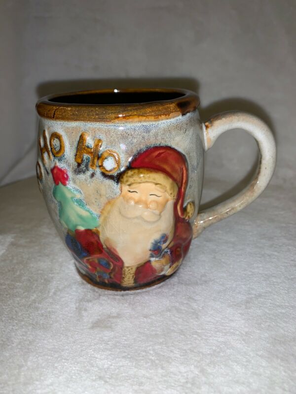 3D Folk Art Ceramic Jolly Santa Claus Coffee Mug Tea Cup Ho Ho Ho Christmas Tree
