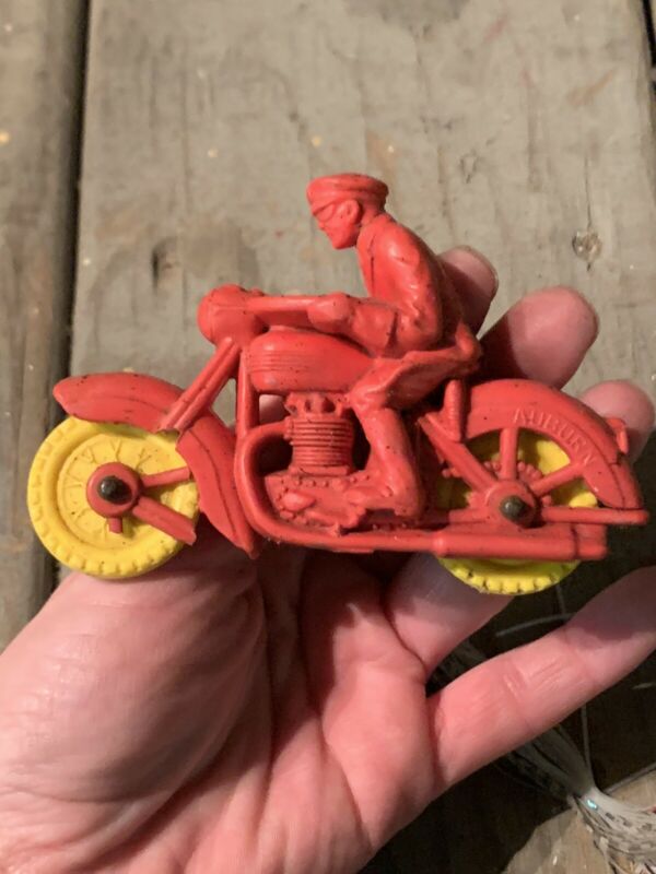 Auburn Rubber 4" Motorcycle Red with Yellow Tires