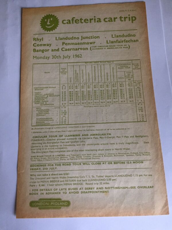 Title (ebay affiliate link): Railway Handbill Rhyl Llandudno Conway Penmaenmawr Llanfairfechan Caernarvon