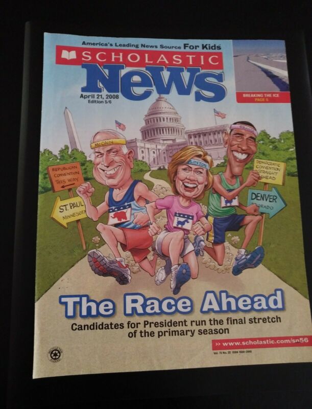 Title (ebay affiliate link): Scholastic News Edition 5/6 from 04/21/2008 Ohama, Clinton, McCain on the cover!