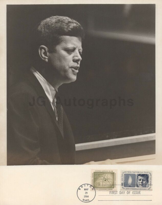 Title (ebay affiliate link): John F. Kennedy - 1964 Vintage 8x10 Photo w/ Commemorative First Day Stamp