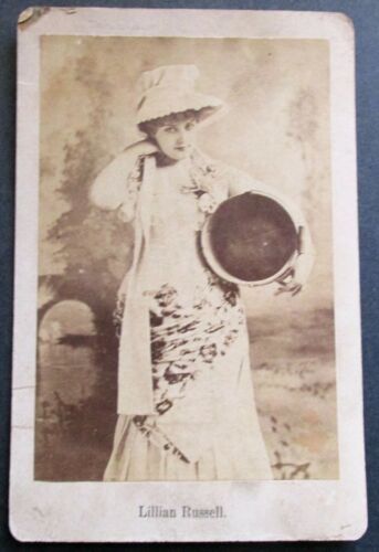 Title (ebay affiliate link): Early Cabinet Card Photo Actress Lillian Russell Holding A Bucket