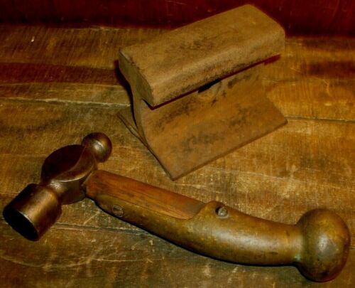 Title (ebay affiliate link): VINTAGE UNIQUE BLACKSMITH HAMMER & R R TRACK ANVIL TOOL LOT - HORSE HAMES HANDLE