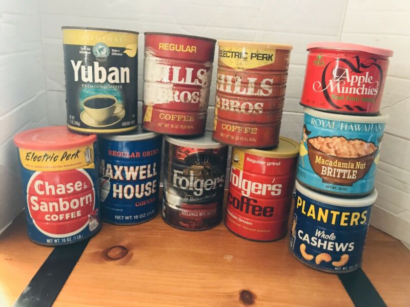Title (ebay affiliate link): VINTAGE COFFEE & PEANUT TINS LOT OF (10) TINS & (8) LIDS