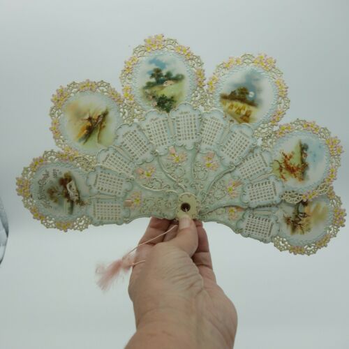 Title (ebay affiliate link): Vintage Antique Victorian 1892 Fan Calendar Diecut Ribbon Laced Advertising