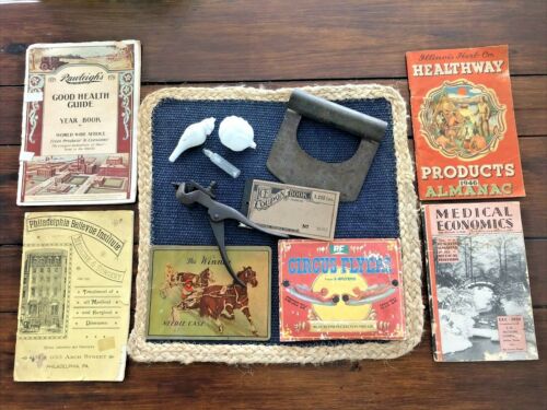 Title (ebay affiliate link): Vintage Estate Junk Drawer Tools Ice Coupon Milk Glass Sewing PF FLYER Almanacs