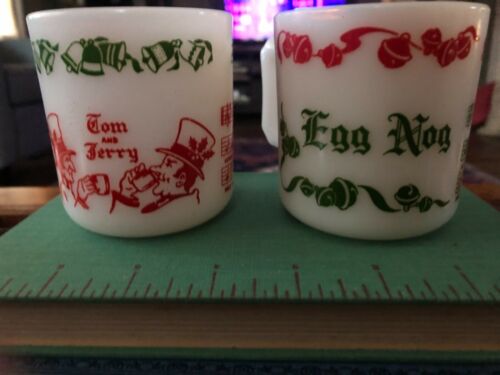 Title (ebay affiliate link): Vintage Christmas Mugs, white milk glass. Egg Nog and Tom & Jerry pair