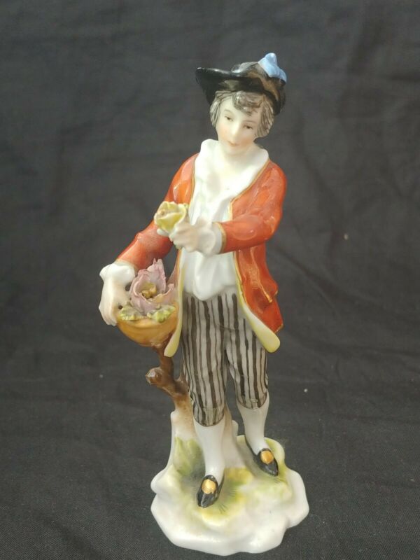 Porcelain Flower Seller Figurine Blue Crown N Mark Capodimonte