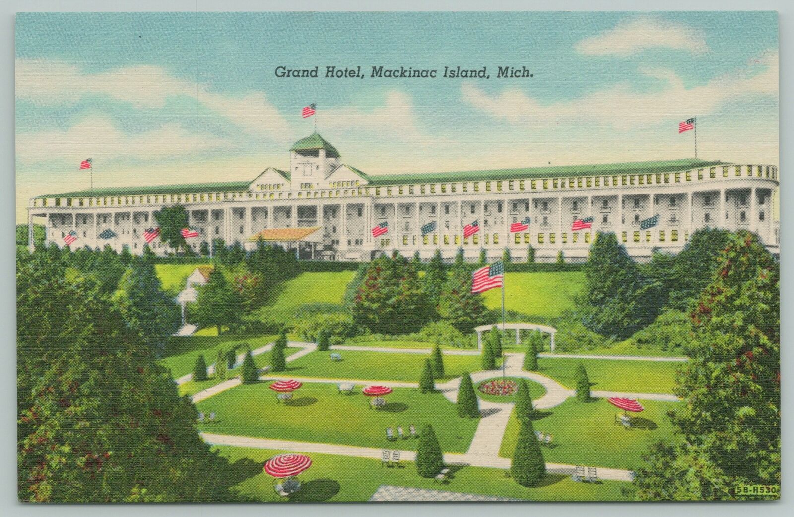 Mackinac Island Michigan~Grand Hotel~1940s Linen Postcard