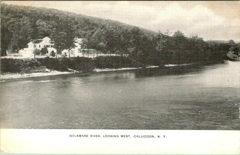 C43-9333,DELAWARE RIVER, LOOKING WEST, CALLICOON, NY., POSTCARD.
