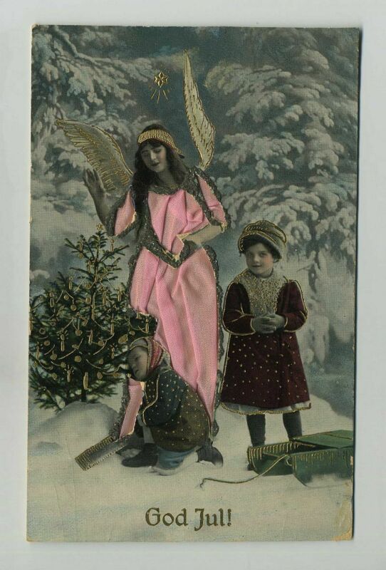 Title (ebay affiliate link): Early Christmas Die Cut Silk Dress Beautiful Angel & Children Postcard yz3904