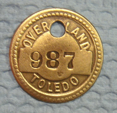 Automotive Tool Check Brass Tag: WILLYS OVERLAND MOTORS