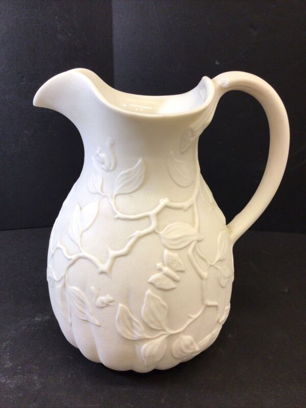 Large ANTIQUE ENGLISH PARIAN PORCELAIN PITCHER White Vine Butterfly