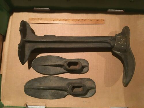 Title (ebay affiliate link): Vintage L & G HDW Co Cast Iron Cobbler Shoe Stand w/ Shoe 3 Lasts. Made in USA.