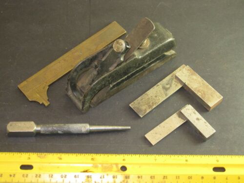 vintage tool lot,Keen Kutter punch,Stanley finger plane,mini machinist square,,,