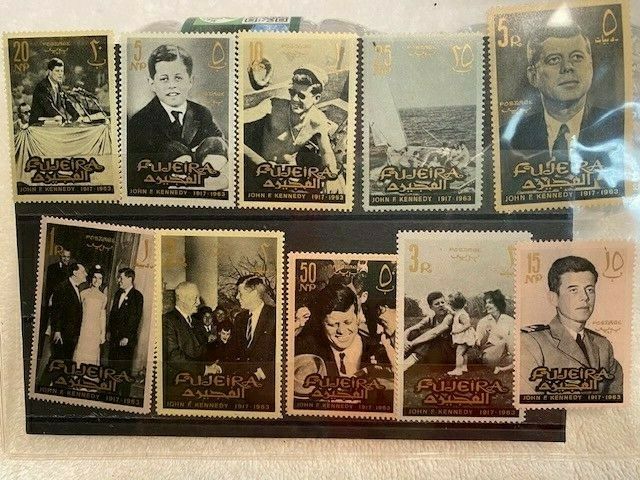Title (ebay affiliate link): VINTAGE JFK COMMEMORATIVE STAMPS/UNIQUE PHOTOS (10) TEN