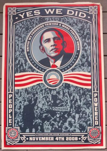 Title (ebay affiliate link): Barack Obama "Yes We Did " November 4th 2008 Original Poster By Shepard Fairey