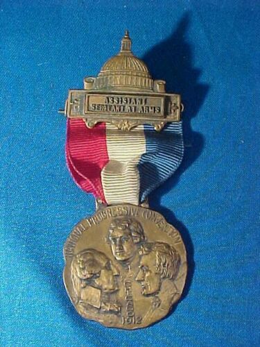 Title (ebay affiliate link): Orig 1912 PROGRESSIVE PARTY Political CONVENTION MEDAL-Asst SERGEANT At ARMS