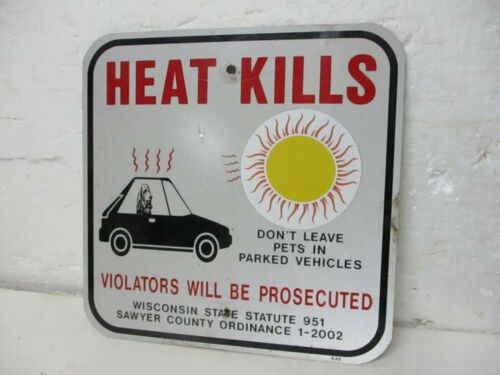 vintage HEAT KILLS Sign don''t leave dog in car SAWYER COUNTY Hayward Wisconsin