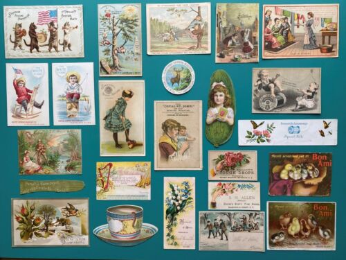 Title (ebay affiliate link): Antique Lot of 24 Trade Cards, 6 brands of sewing machines, dye, pickle, Bon Ami