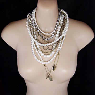 Title (ebay affiliate link): vtg antique chunky multi strand chain pearl necklace