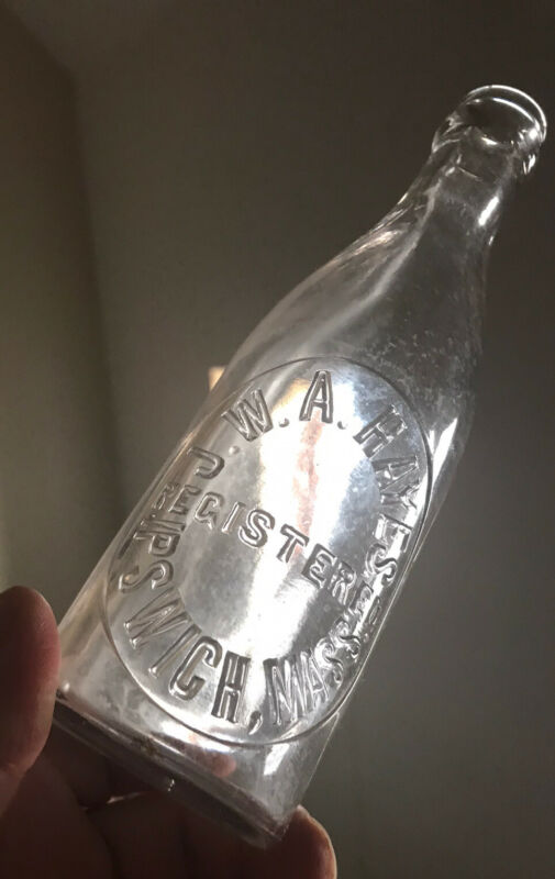 Title (ebay affiliate link): Blown Bottle IPSWICH MASS JWA HAYES Soda Bottle Early 1900s Hand Finished Top