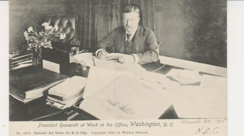 Title (ebay affiliate link): President Teddy Roosevelt in his Office Postcard, 1905, Nice Condition
