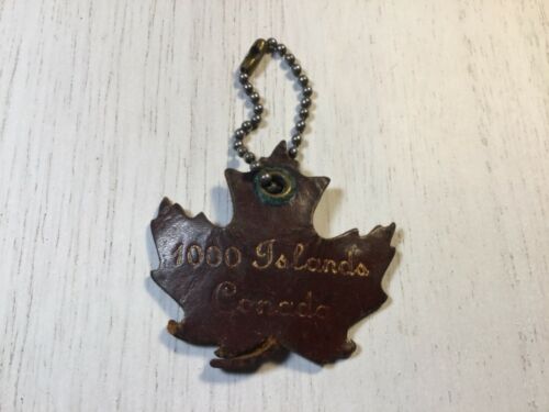 Vintage estate keychain leather leaf embossed 1000 ISLANDS CANADA