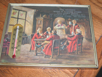 NICE VINTAGE PICTURE LIQUOR ADVERTISING THERMOMETER