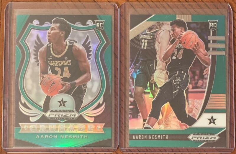 Title (ebay affiliate link): 2020 Panini Prizm Draft Picks AARON NESMITH Green Prizm Rookie Lot (2) Crusade +
