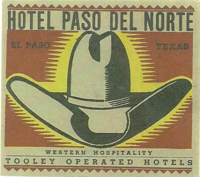 HOTEL PASO DEL NORTE luggage TEXAS label (EL PASO)