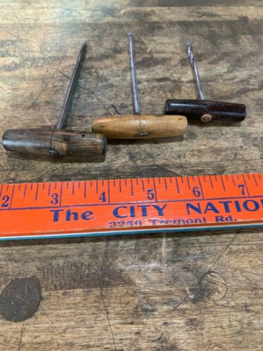 Title (ebay affiliate link): 3 Antique Gimlets Or Screw Hole Starters Hardwood Handles Nice