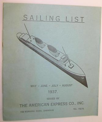 1937 American Express Steamship Sailing List Shanghai